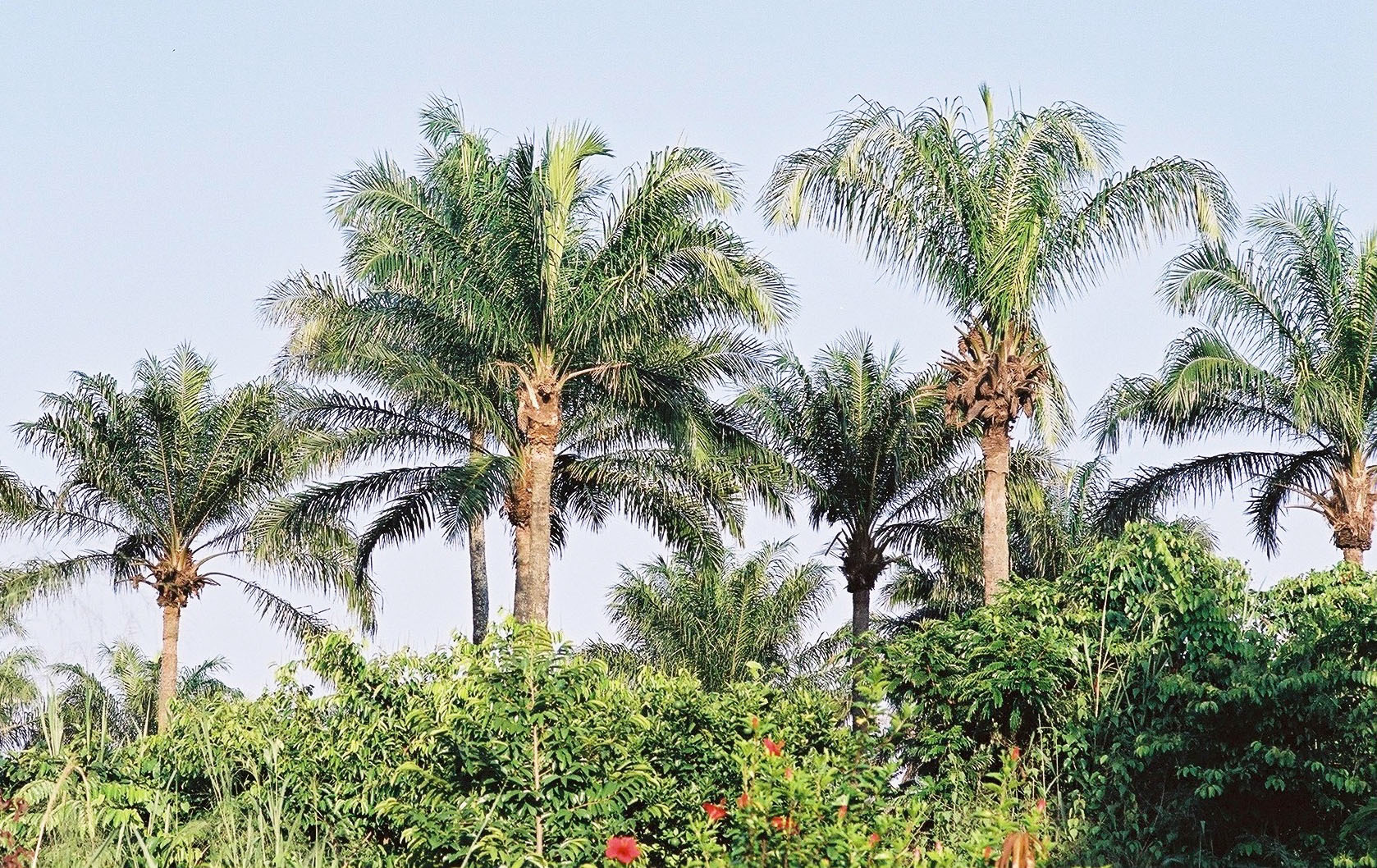 Elaeis guineensis که در منابع اسپانیایی با نام palma aceitera africana شناخته میشود، یکی از مهمترین نخلهای اقتصادی جهان و بومی مناطق استوایی غرب آفریقاست. این گونه به دلیل توانایی تولید حجم بالای روغن از میوه و دانه، در قرن گذشته به کشورهای استوایی آسیا و آمریکای لاتین نیز معرفی شد و به یکی از منابع اصلی روغن نباتی تبدیل گردید. نخل روغنی دارای تاجی بزرگ با برگهای پرمانند، تنهای سخت و میوههایی خوشهای است که از نظر رنگ و اندازه بسیار شاخص هستند. چرخه رشد سریع و باردهی بالا از مهمترین ویژگیهای آن در زیستگاه طبیعی و مزارع تجاری است.