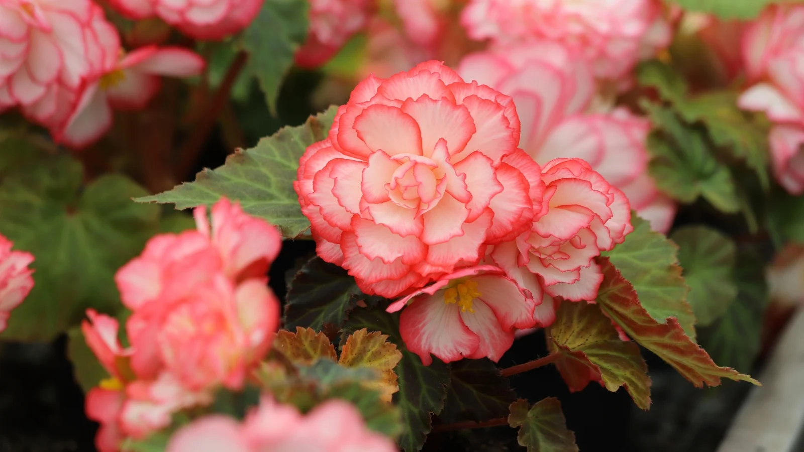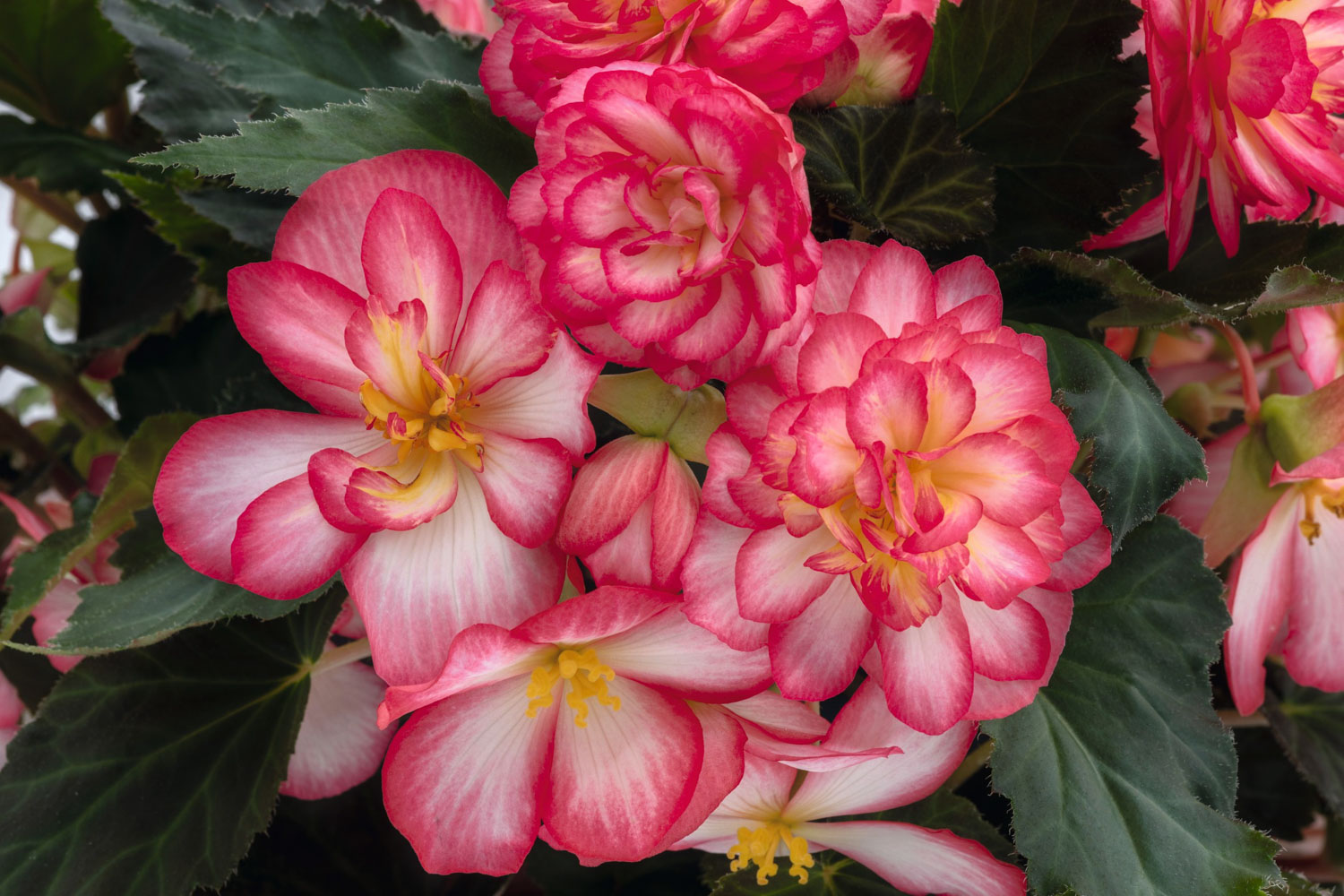 بگونیا با نام علمی Begonia tuberhybrida یک گروه پیچیده از دورگههای چندساله و حساس به سرما از خانواده بیگونیاسیا (Begoniaceae) است. این گیاهان بهخورد غدههای (tuber) قهوهایرنگ، مسطح و گرد خود شناخته میشوند که از آنها شاخههای آبدار و برگهای نامتقارن قلبشکل (اغلب به رنگ سبز تیره براق، گاهی با رگههای نقرهای) و گلهای فوقالعاده بزرگ، دوگل (نر و ماده) و پرپَر ظاهر میشوند. گلها به طیف وسیعی از رنگهای درخشان قرمز، نارنجی، زرد، صورتی، سفید و دو رنگ، با فرمهای مختلفی چون کاملیا، رز، ژابوتی و حاشیهدار موجود هستند. این گیاهان به عنوان سلطان سایه شناخته میشوند و برای گلدانهای آویز، سبدهای معلق، حاشیه سایهدار باغها و فضاهای سرپوشیده ایدهآلند.