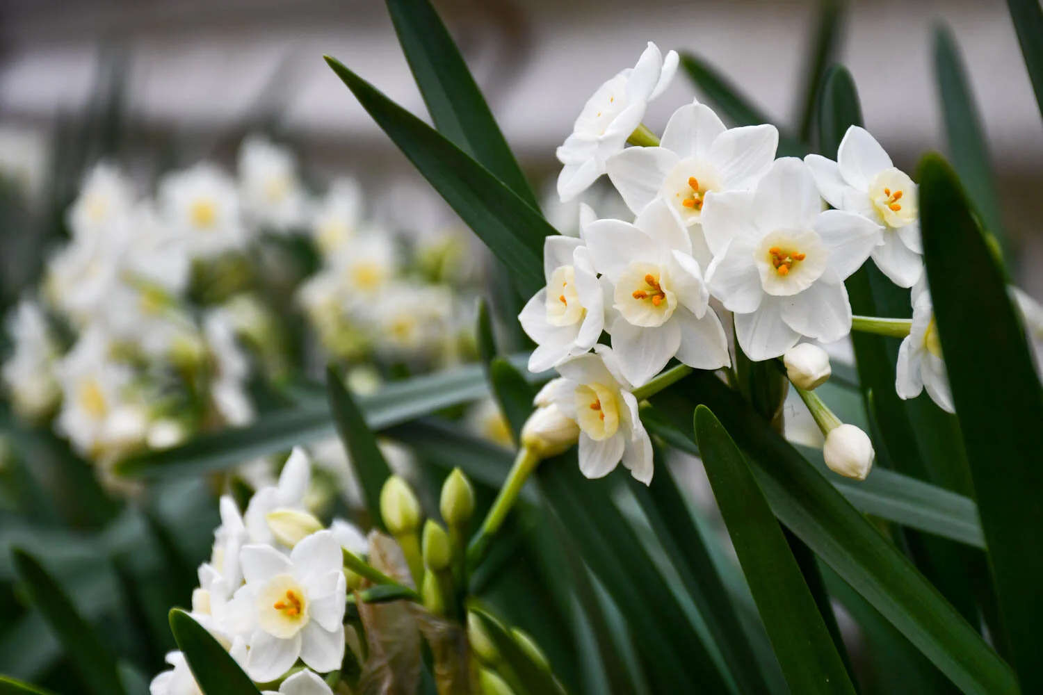 نرگس با نام علمی (Narcissus tazetta)، گیاهی چندساله علفی و پیازی از خانواده نرگسیان (Amaryllidaceae) است. خاستگاه آن حوزه مدیترانه، از جنوب اروپا تا خاورمیانه و آسیای مرکزی است. این گونه بهدلیل عادت رشد چندگلدهی (خوشهای) و عطر شدید و شیرین گلهایش متمایز میشود. هر ساقه گلدهنده میتواند بین ۳ تا ۲۰ گل به رنگ سفید خالص با تاج (کاپ) کوچک و فنجانی شکل به رنگ زرد روشن یا نارنجی تولید کند. برگها نیزهای، باریک و به رنگ سبز-آبی هستند. به دلیل گلدهی زمستانه تا اوایل بهار و سهولت کشت، هم در فضای باز (در مناطق معتدل) و هم برای گلدهی اجباری (فورسینگ) در گلدان داخل خانه بسیار محبوب است.