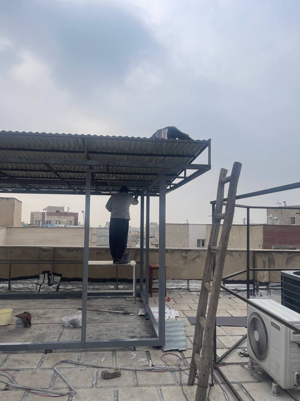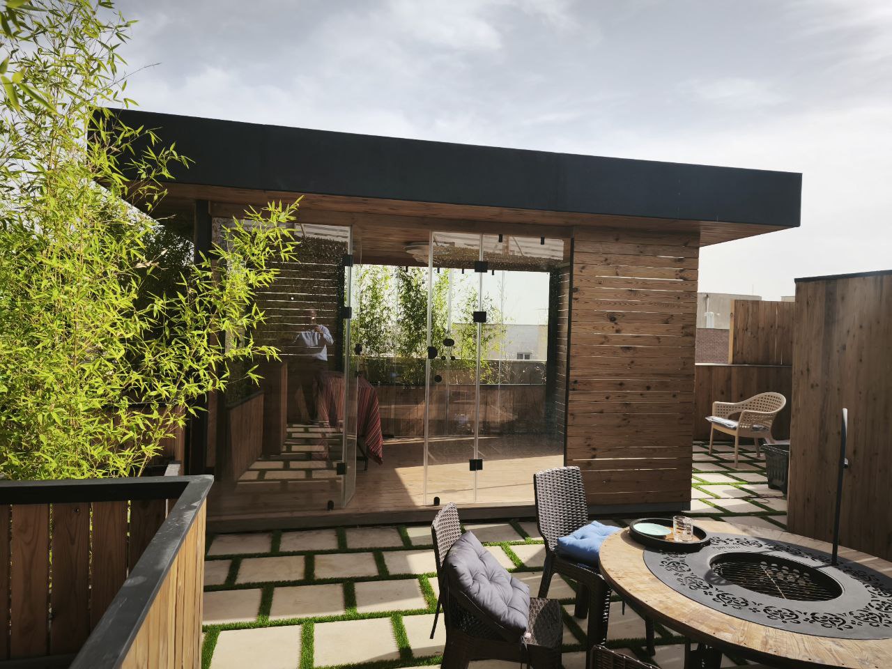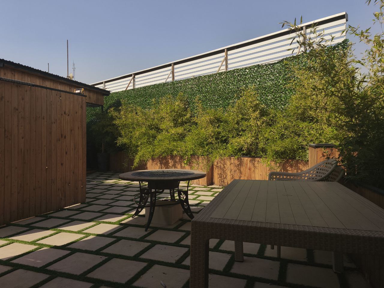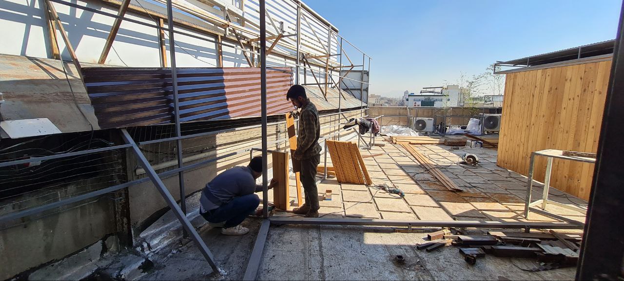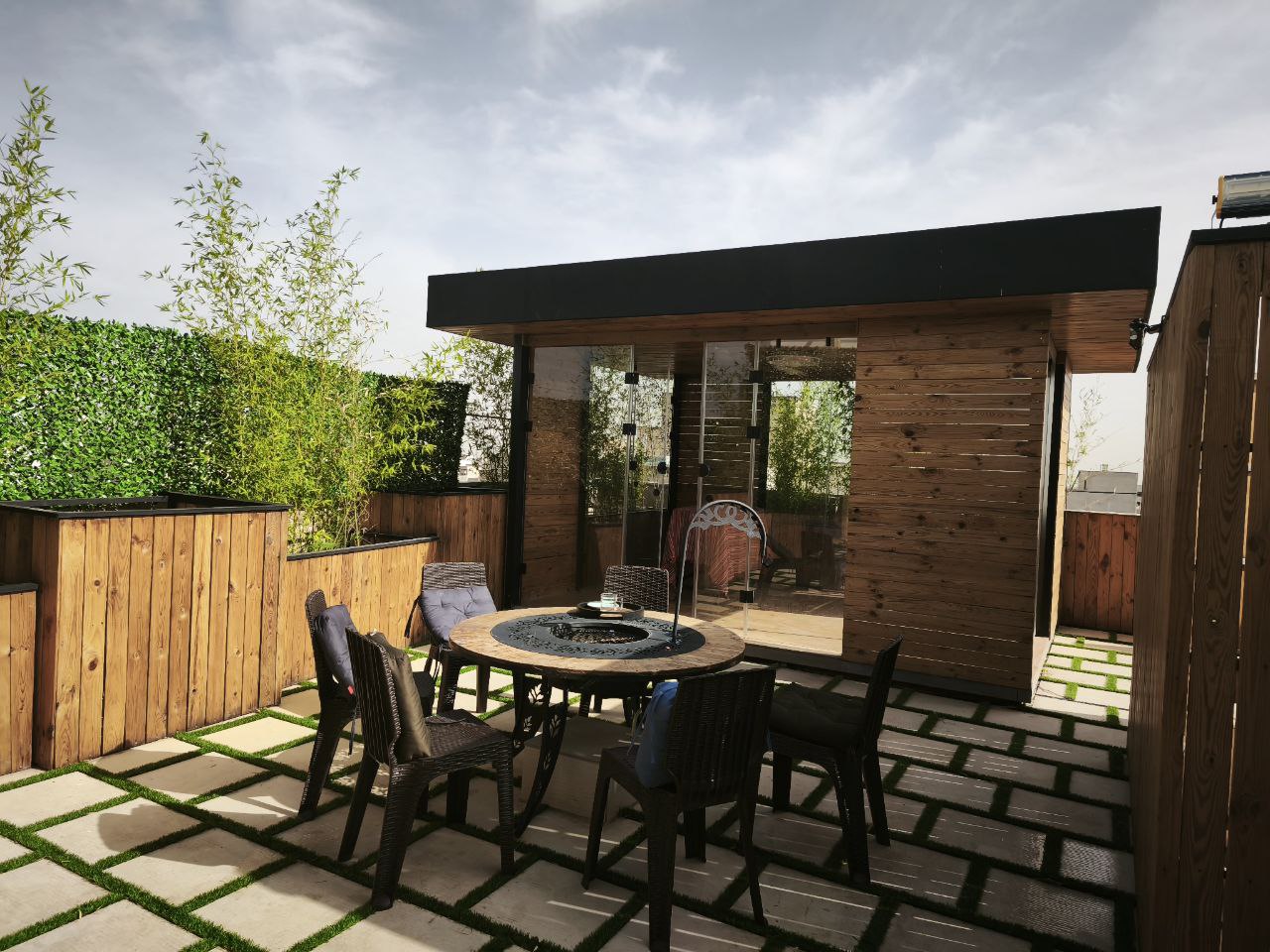 احداث روفگاردن در بامی به مساحت ۱۲۰ متر مربع، با هدف ایجاد فضایی سبز، مدرن و کارآمد در عین حفظ زیبایی و نظم شهری انجام شد. در بخش ابتدایی پروژه، یکی از چالشهای اصلی وجود کولرهای گازی و تأسیسات فنی بود که جلوه بصری فضا را تحتتأثیر قرار میداد. برای جداسازی این بخش از فضای اصلی، دیوارهای چوبی با طراحی هماهنگ با سبک مدرن بام اجرا شد تا هم تهویه کولرها مختل نشود و هم دید مستقیم به این بخش حذف گردد.